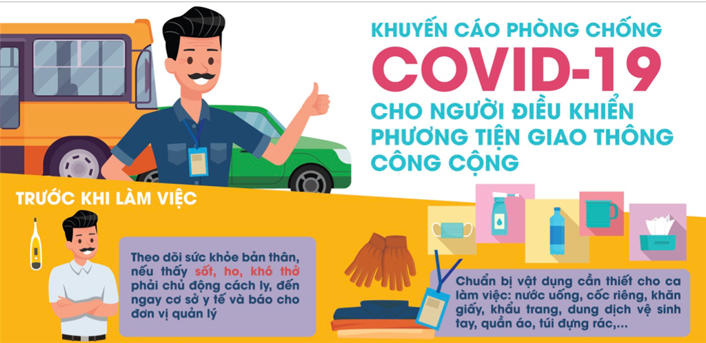 – Trong quá trình làm việc, nếu người điều khiển phương tiện hoặc hành khách có biểu hiện sốt, ho, khó thở, cần thông báo với đơn vị quản lý và thông báo cho cơ quan y tế (qua đường dây nóng), đến cơ sở y tế gần nhất để được tư vấn, khám và điều trị kịp thời. Ngay sau khi trả khách, lái xe thực hiện khử khuẩn xe và vệ sinh cá nhân.